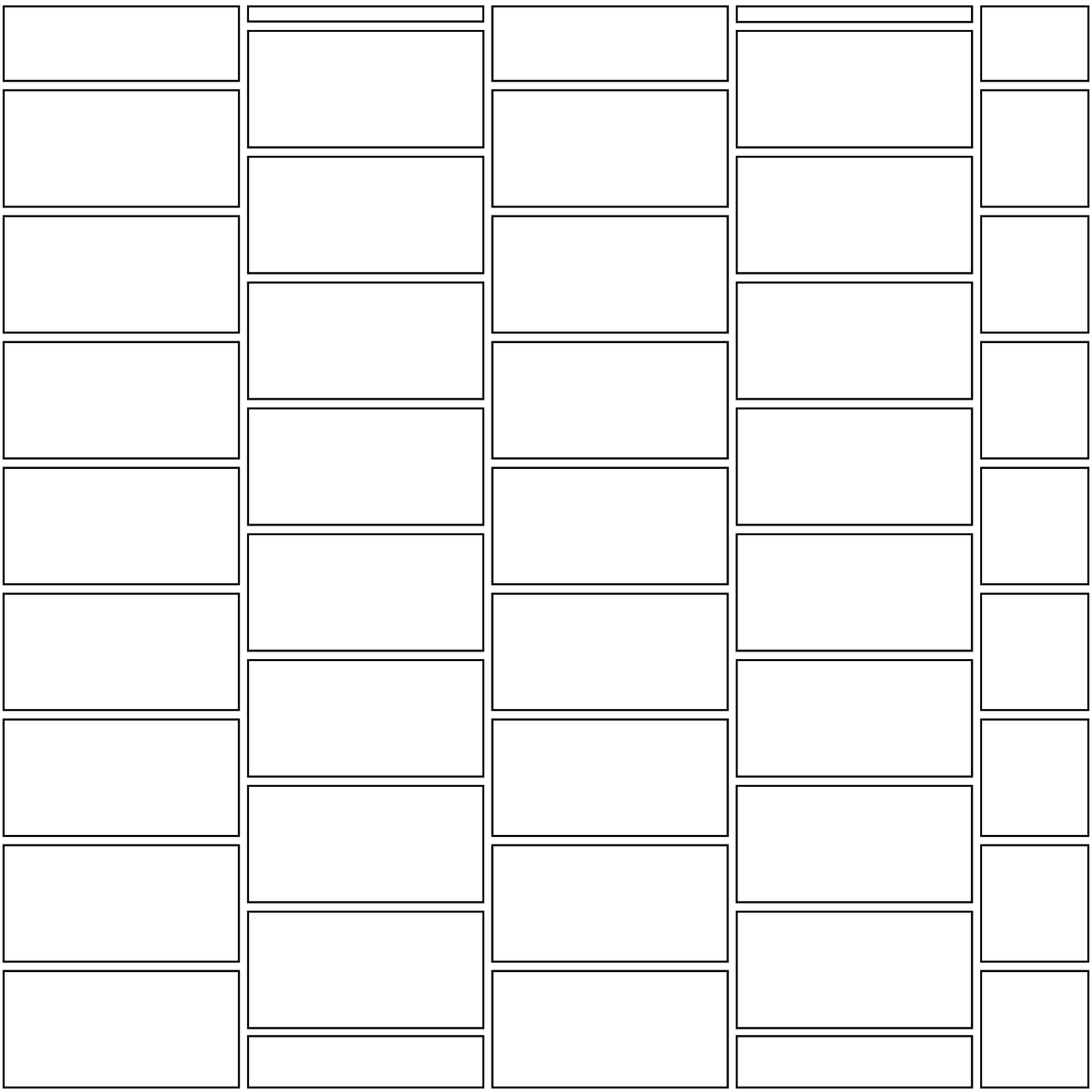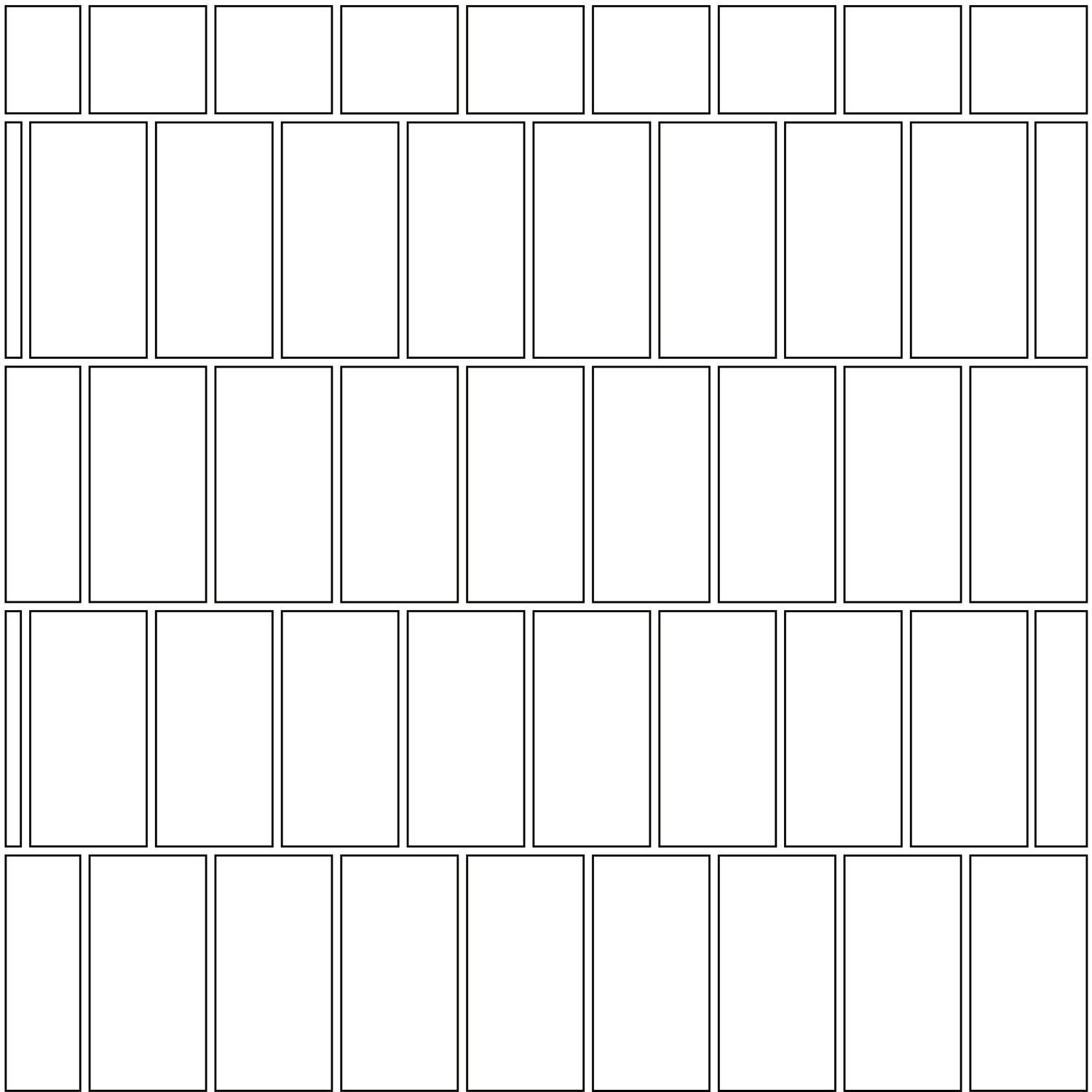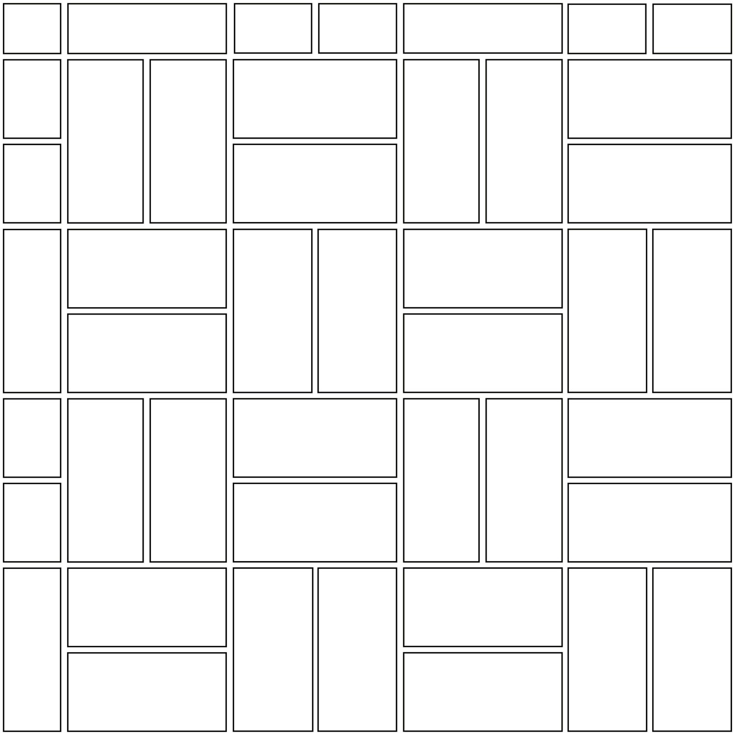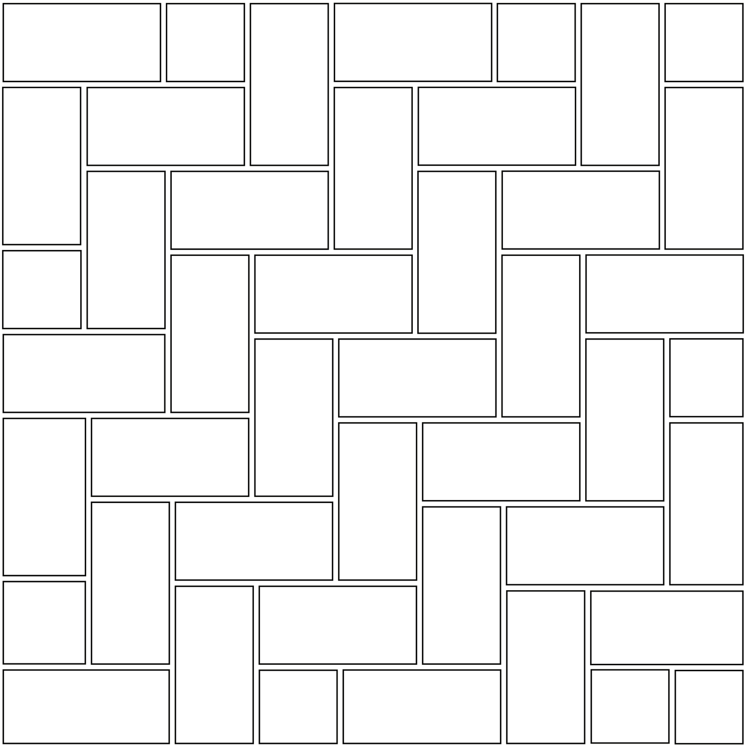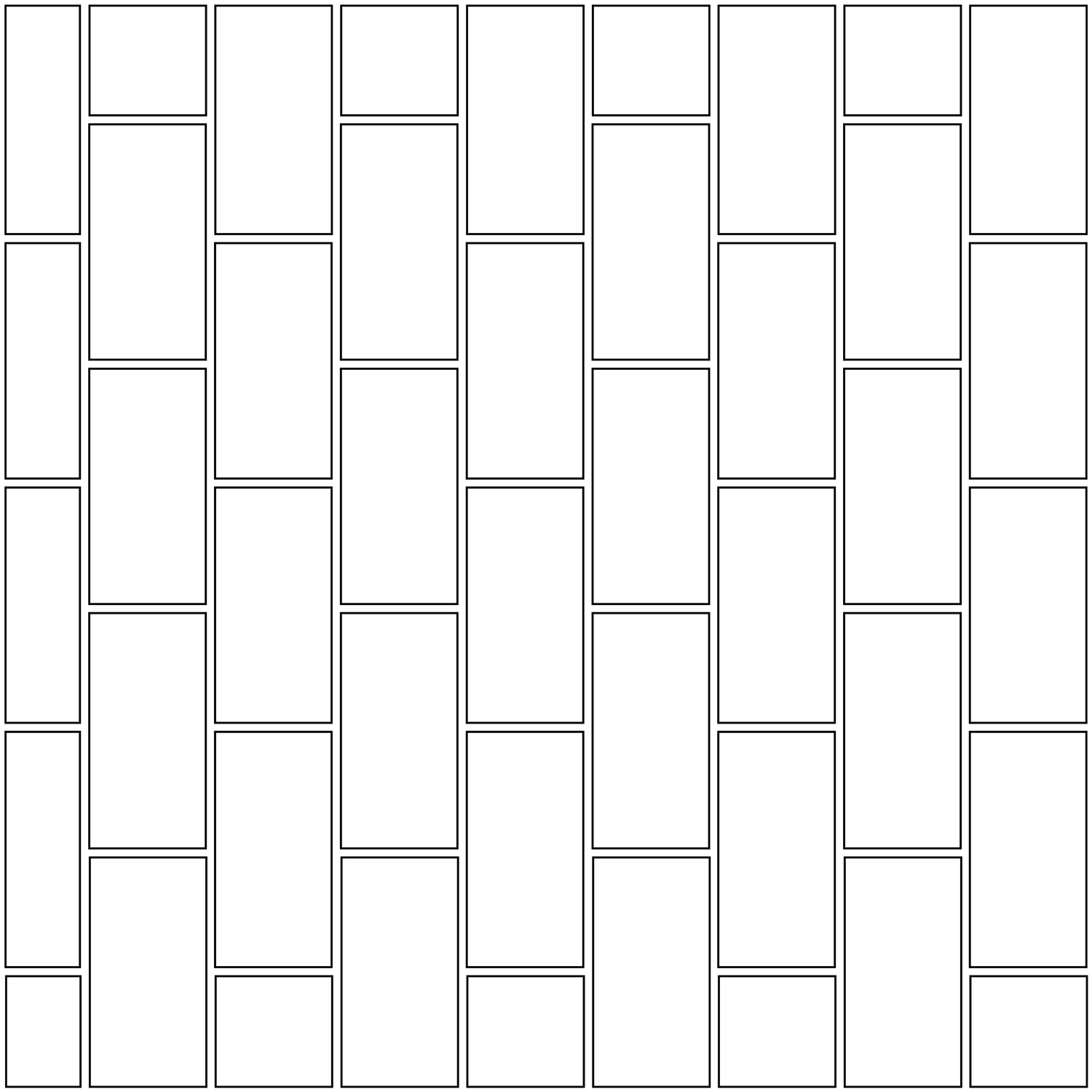 By alternating two vertical tiles with two horizontal ones, this pattern creates a repeating square motif with geometric appeal. It balances boldness with symmetry, perfect for those wanting a structured but eye-catching design.