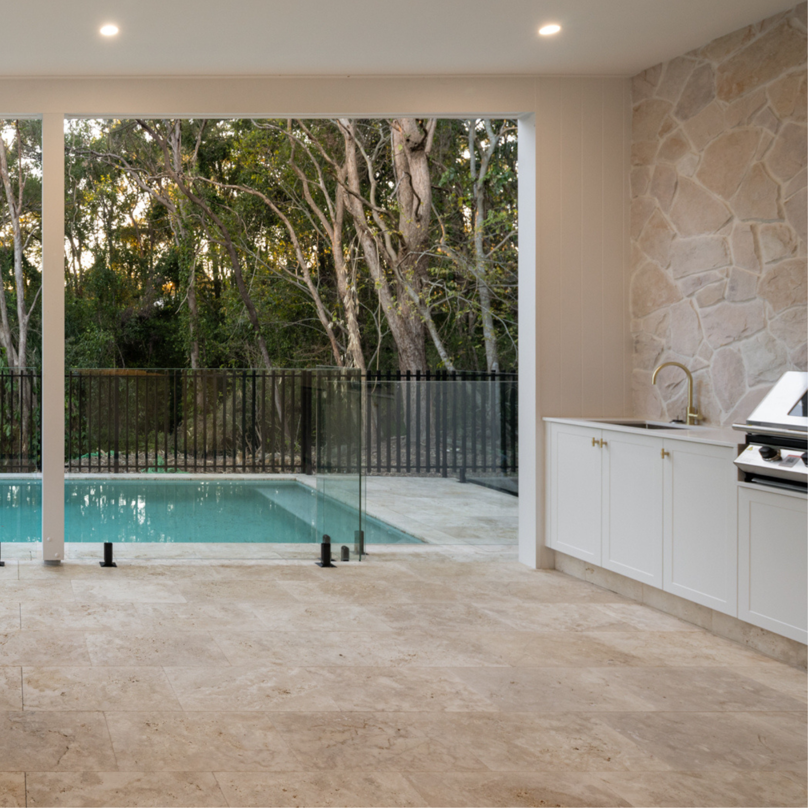 Our most popular tiles from 2025 have been travertines with low tonal variation and gorgeous natural veining - giving a softened-stone look.